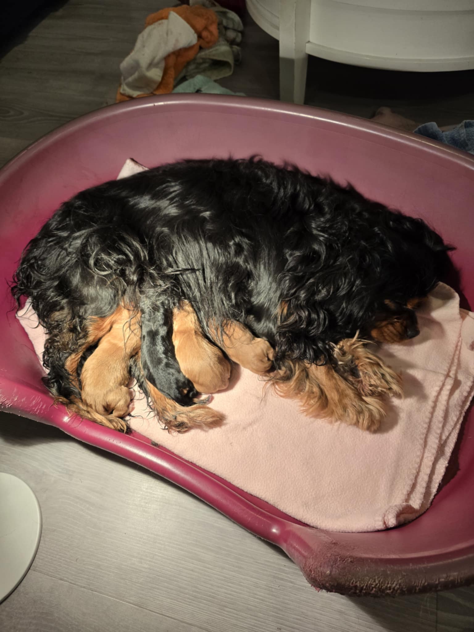 Sessan och Musse fick den 30/3-26 4st valpar. 1 st black and tan tik, 2 st ruby tikar & 1 st ruby hane